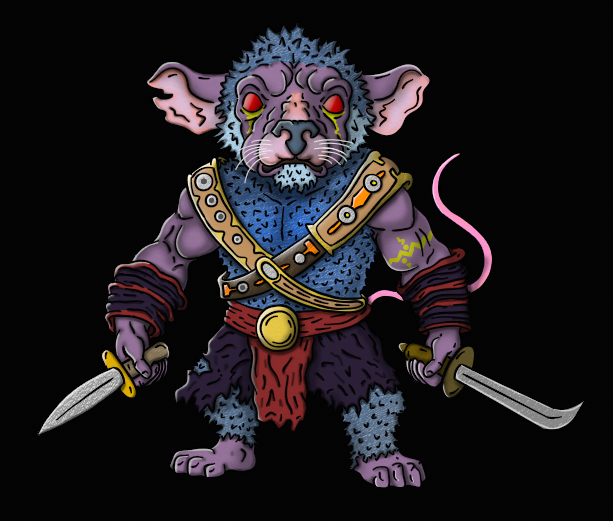I am also narrowing down my print-n-play Kickstarter plans for it. Originally, I was going to release a different set of characters, but as I work out the details for the over-arching story, I’ve rearranged it a bit. Now, the first release will have a set of enslaved rat-like creatures that I’m currently illustrating.